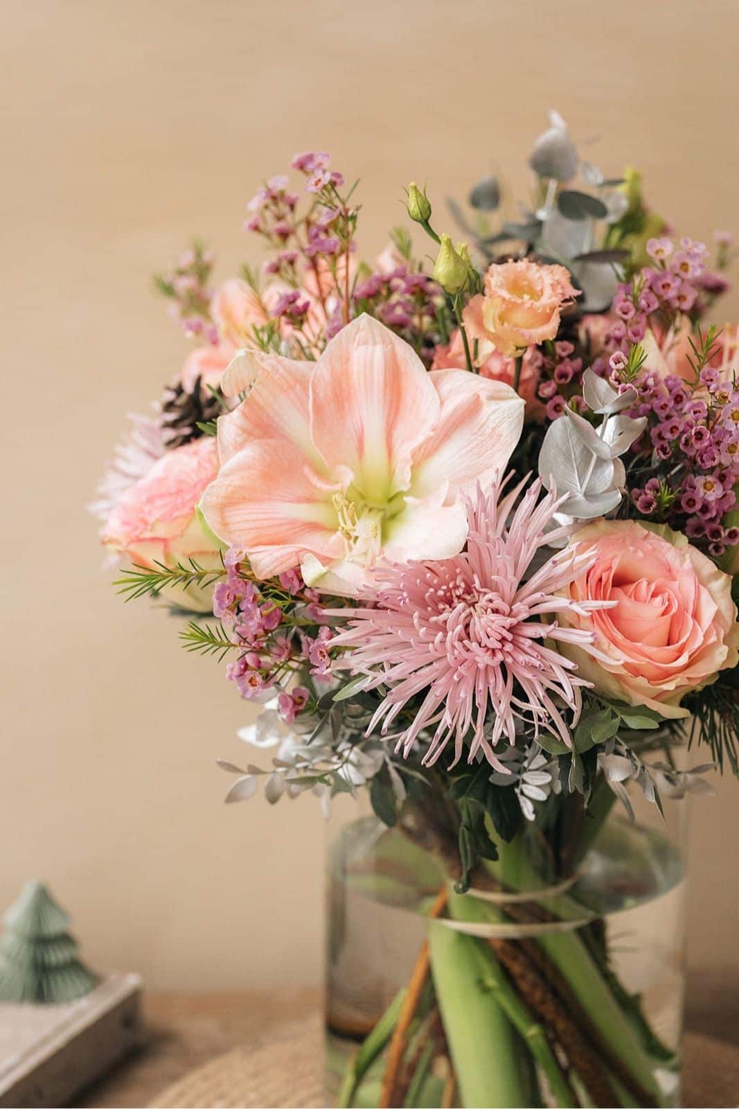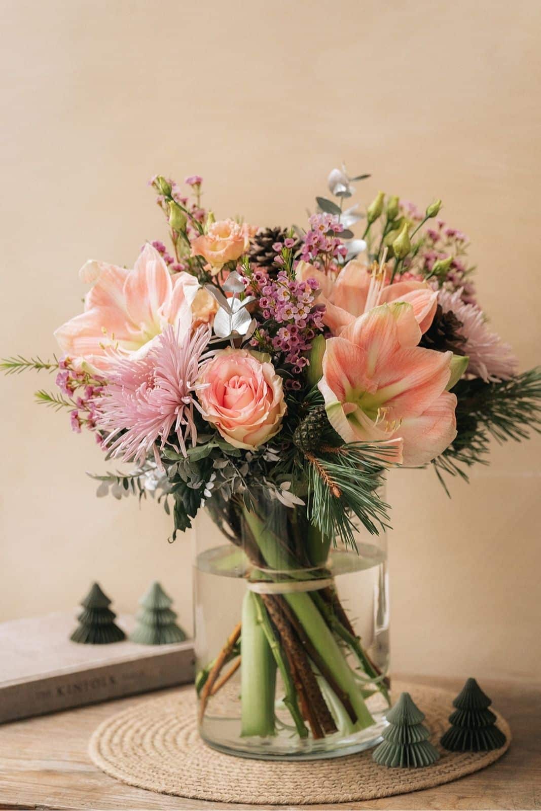 Wenn Sie zu Hause angekommen sind, stellen Sie Ihren KANEL-Blumenstrauß in eine Vase mit klarem Wasser. Wechseln Sie das Wasser alle zwei Tage und schneiden Sie die Stängel schräg ab (mit einer Gartenschere oder einem Blumenmesser).