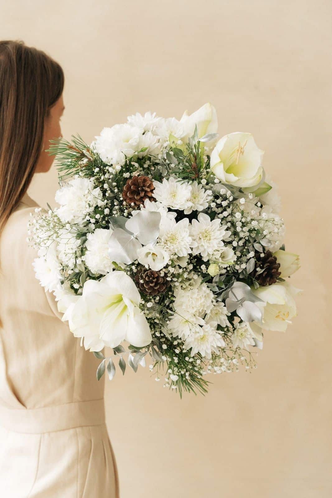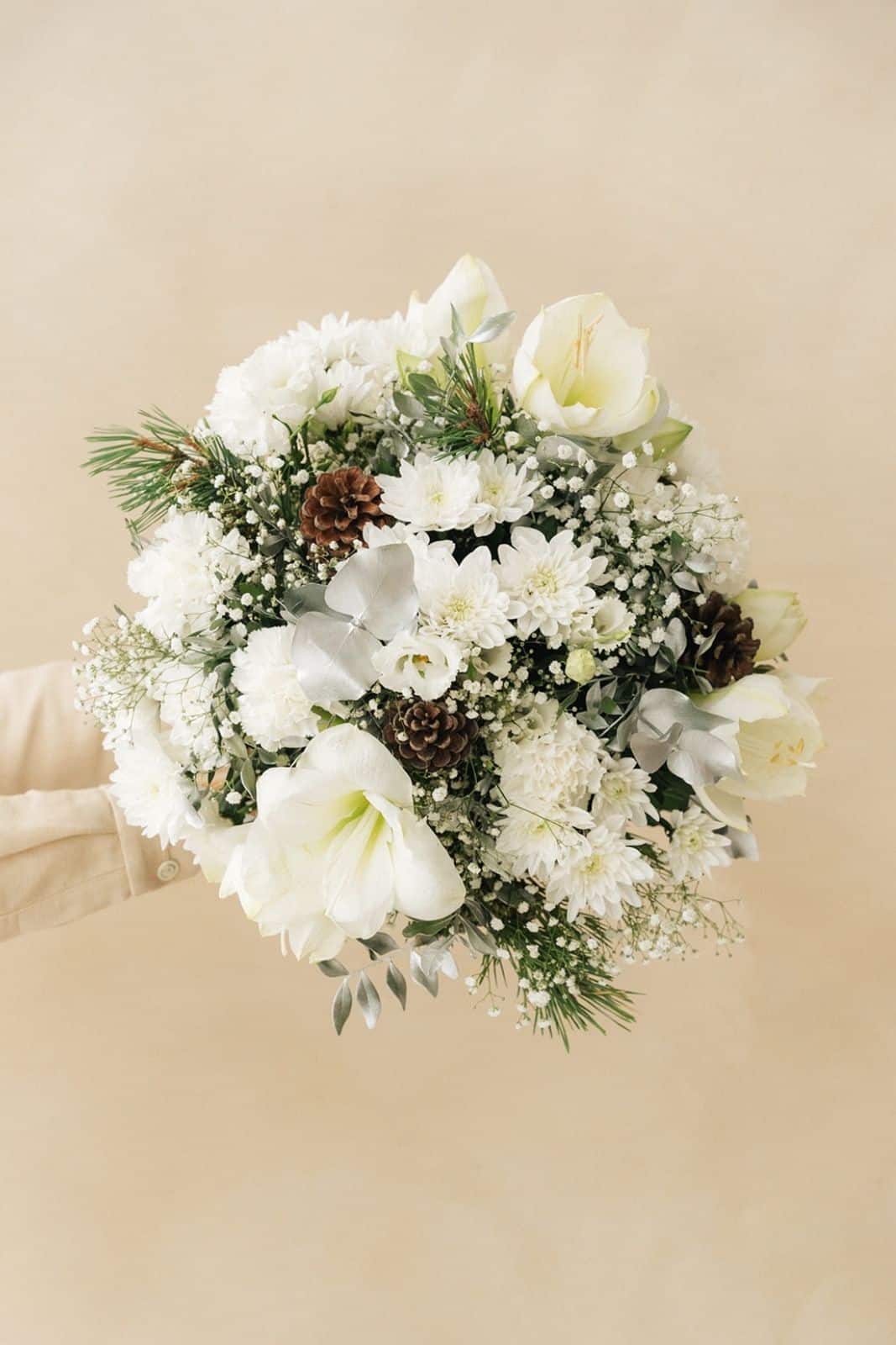 Durchschnittliche Abmessungen des klassischen Straußes: Durchmesser 32 cm, Höhe 50 cm.