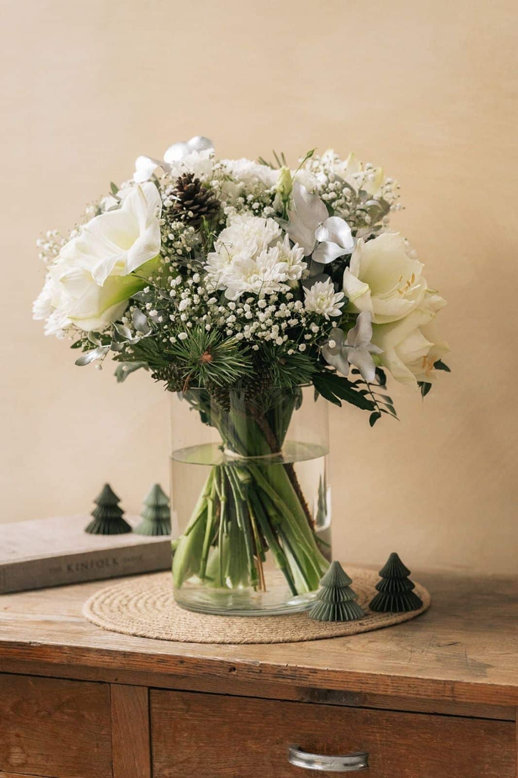 Wenn Sie zu Hause angekommen sind, stellen Sie Ihren KANEL-Blumenstrauß in eine Vase mit klarem Wasser. Wechseln Sie das Wasser alle zwei Tage und schneiden Sie die Stängel schräg ab (mit einer Gartenschere oder einem Blumenmesser).